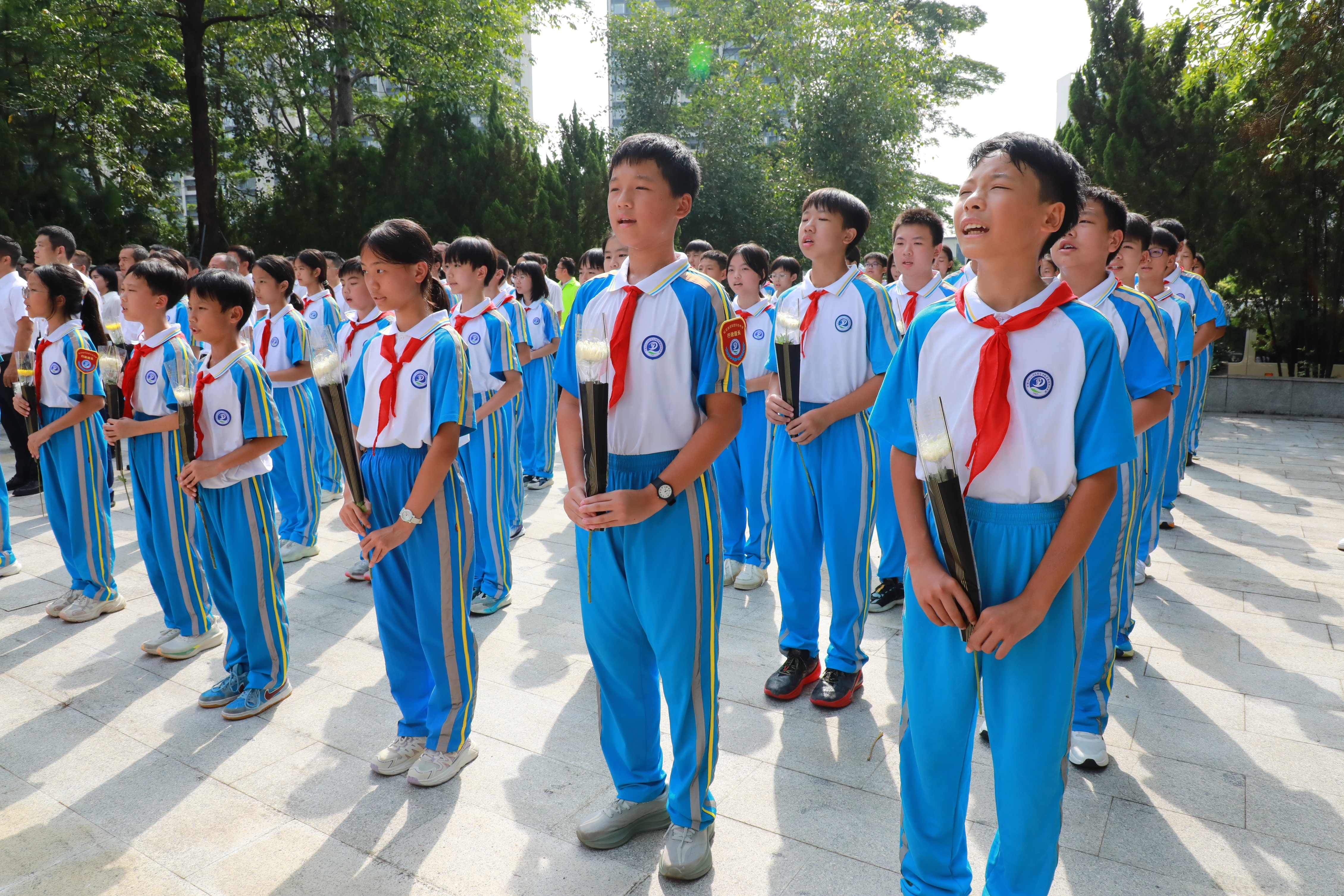默哀毕,手持鲜花的少先队员高唱《我们是共产主义接班人》。他们清脆的歌声,如同初升的太阳,照亮了前行的道路,表达了少年儿童继承先烈遗志、奋发图强的坚定决心,充分展现新时代少年的责任与担当。