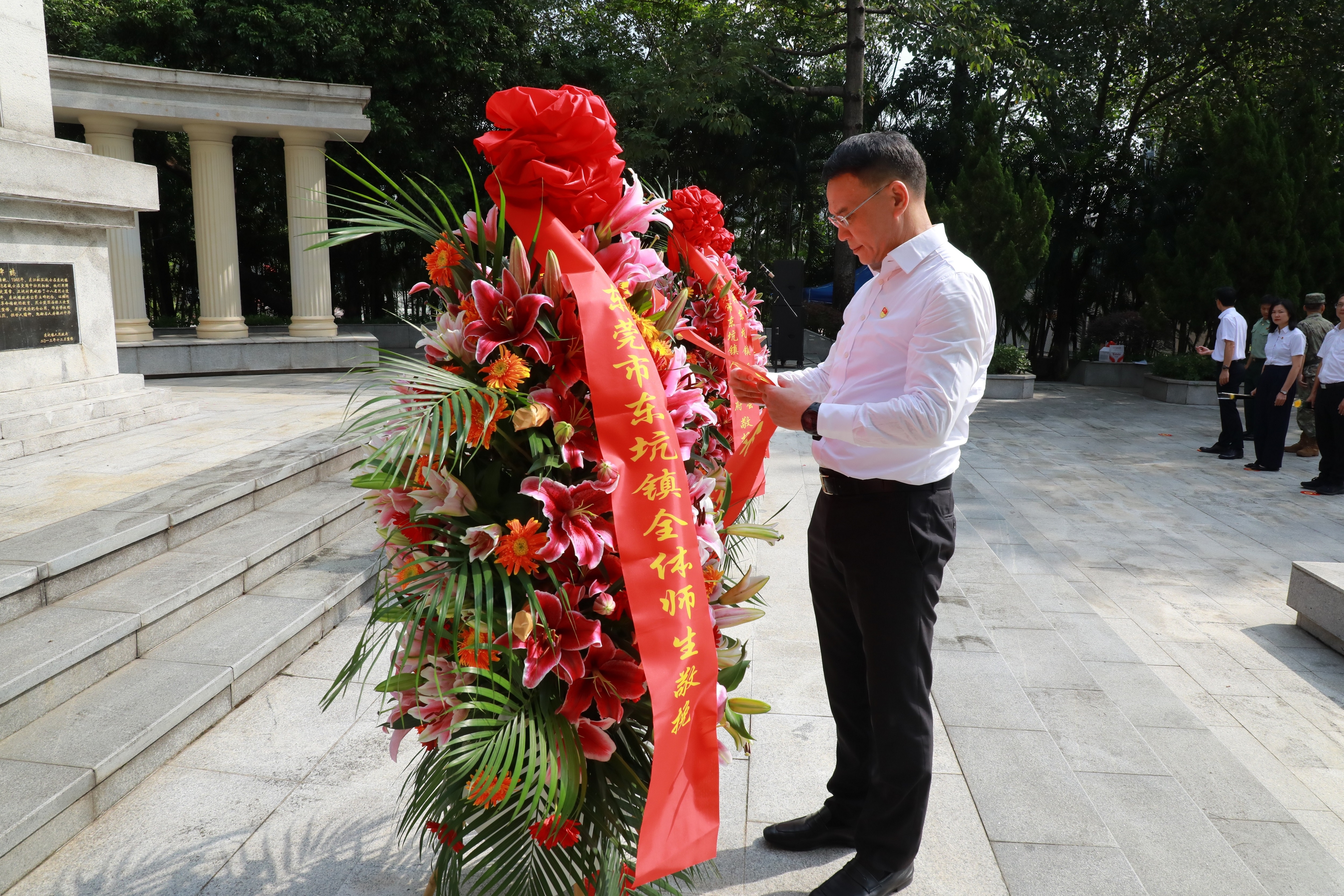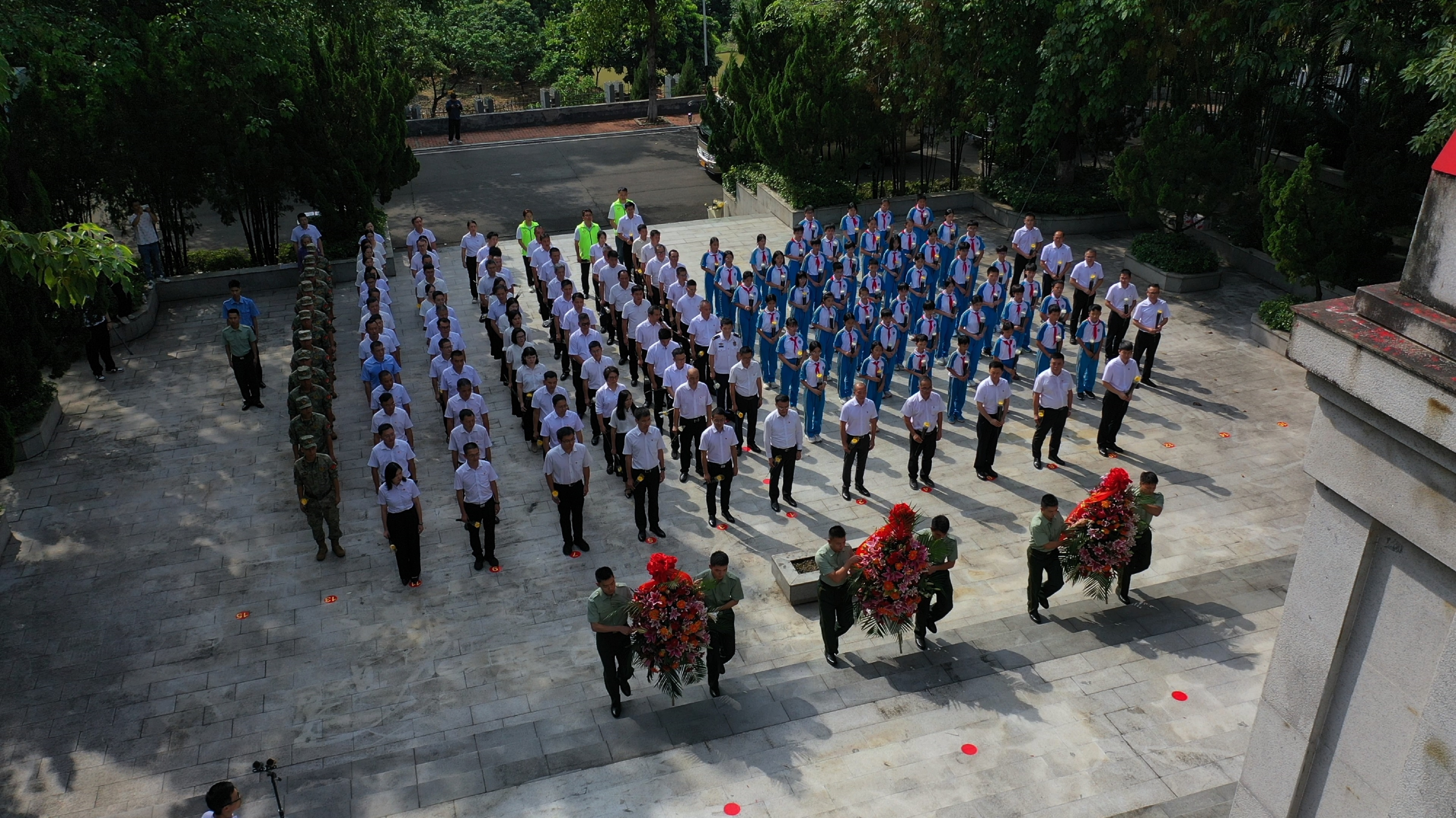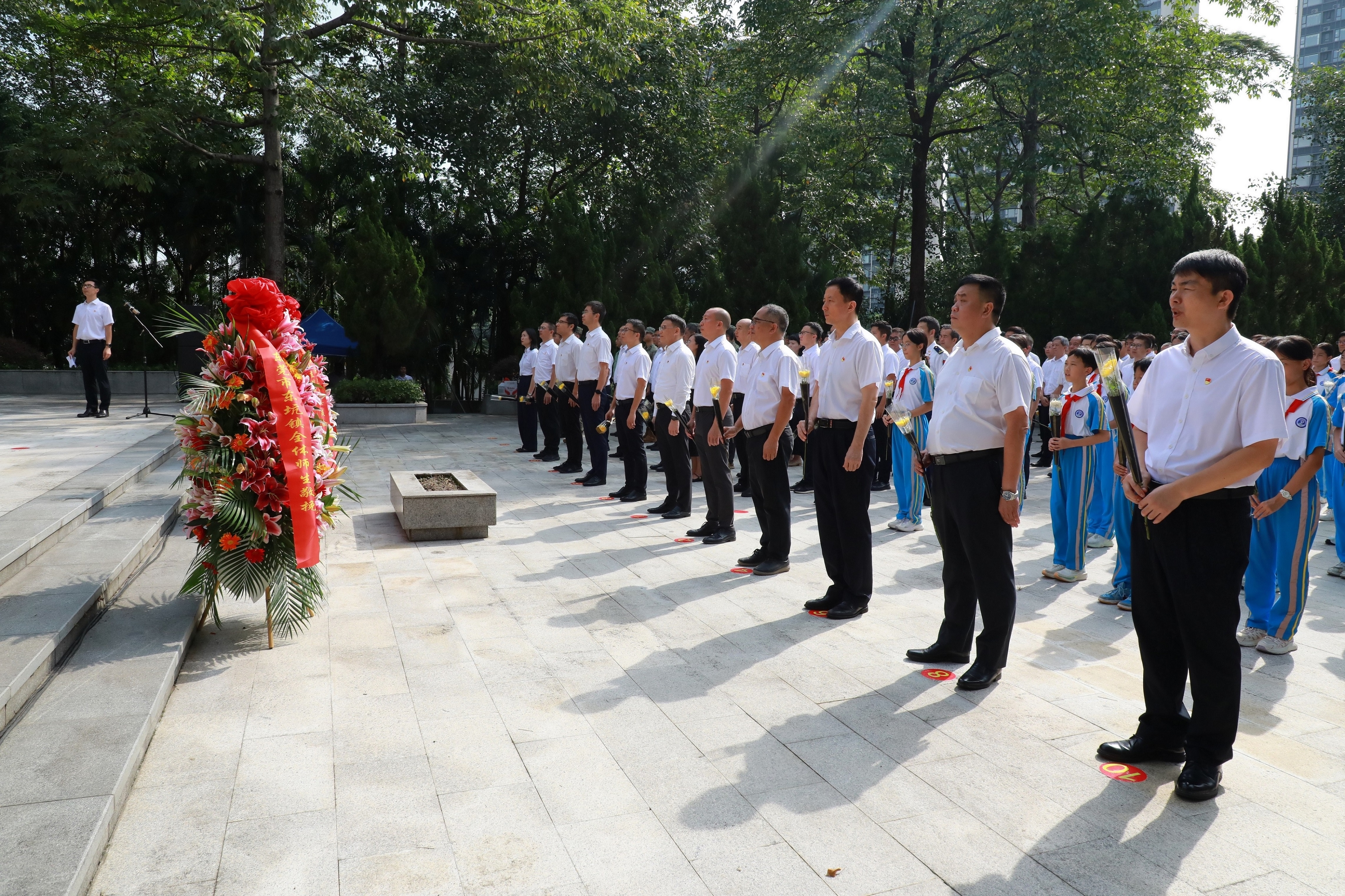 镇党委书记谭全河等镇领导班子成员、相关单位(部门)负责人、各村(社区)党组织书记、退役军人代表、烈属代表,以及中、小学师生代表等共约160人参加活动。镇党委委员钟浩华主持了活动。