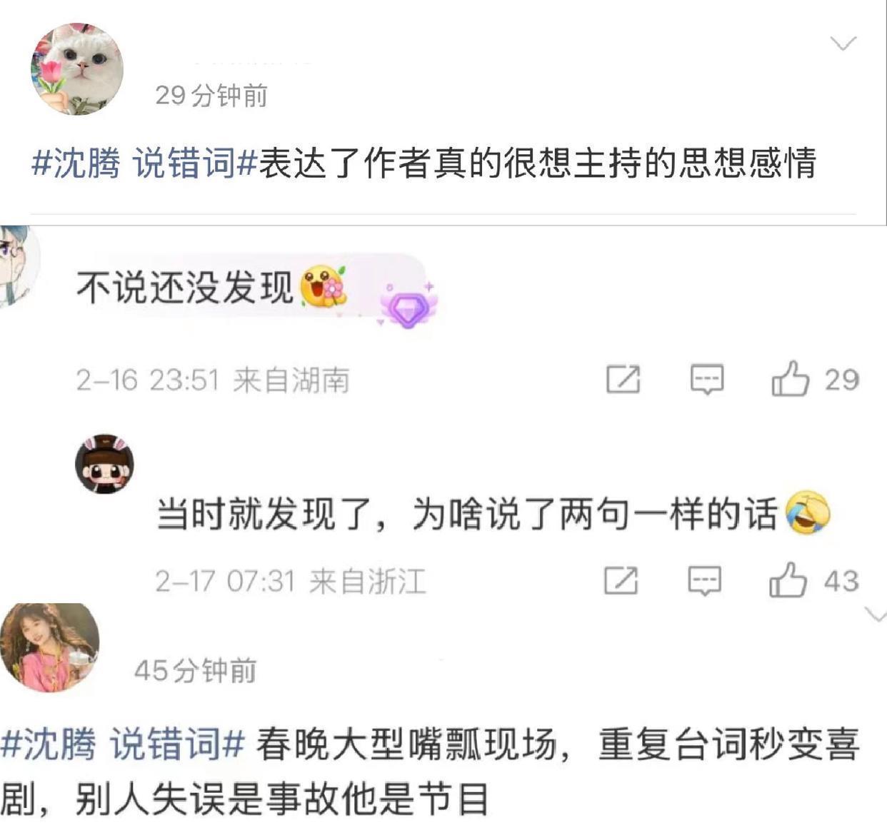 王一博跳舞的时候险些滑倒,沈腾报幕的时候嘴瓢又说错词了。晚会结束后采访中,两人分别对出现的小插曲进行了回应。