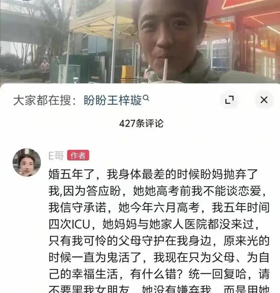 眼看新女友因为自己被网暴,E哥坐不住了。 他在评论区直接开撕,第一次把离婚的真相和这几年的苦楚全倒了出来。 他说,自己已经离婚五年了。 而这五年,是他身体最差的五年。