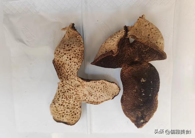2. 陈皮用温水泡软,轻轻刮掉内层白瓤,冲洗干净。
